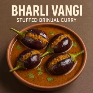 Tender brinjals stuffed with a spiced peanut-coconut masala, slow-cooked to perfection — a signature dish from Western Maharashtra.